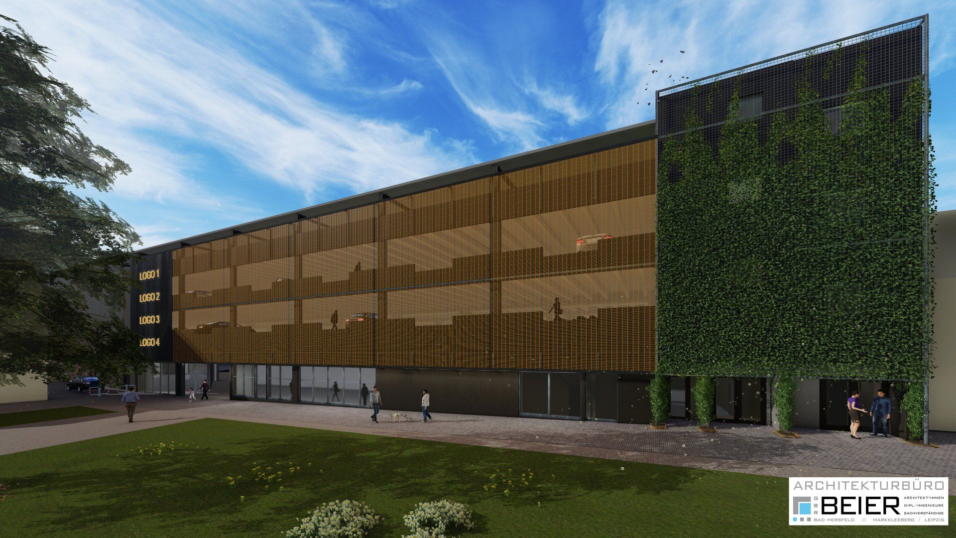 Baumaßnahme: Neugestaltung und Nutzungsänderung Parkhaus mit Gewerbe- und Dienstleistungsflächen mit Passage