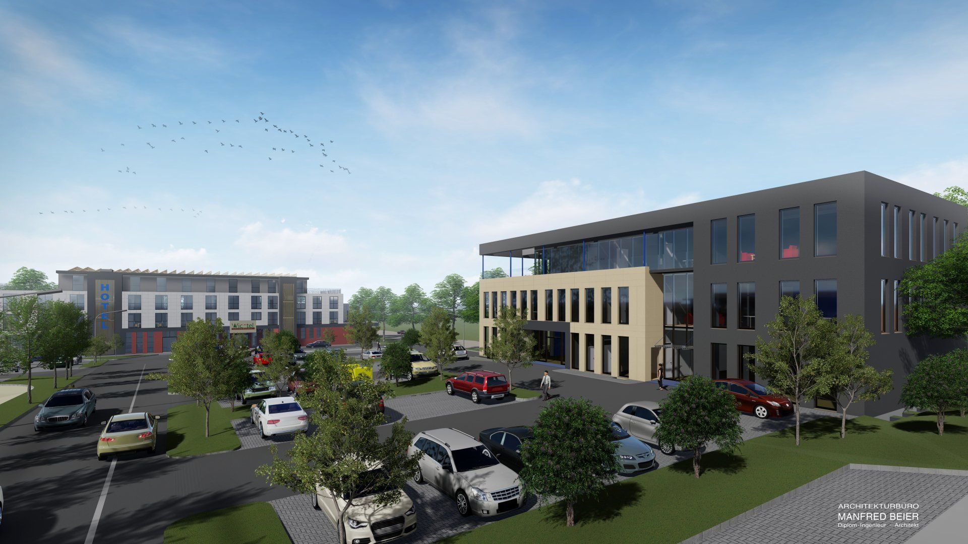 Baumaßnahme: Neubau Verwaltungsgebäude mit VR-Bankfiliale, Ferrero – Verkauf und Werbeagentur